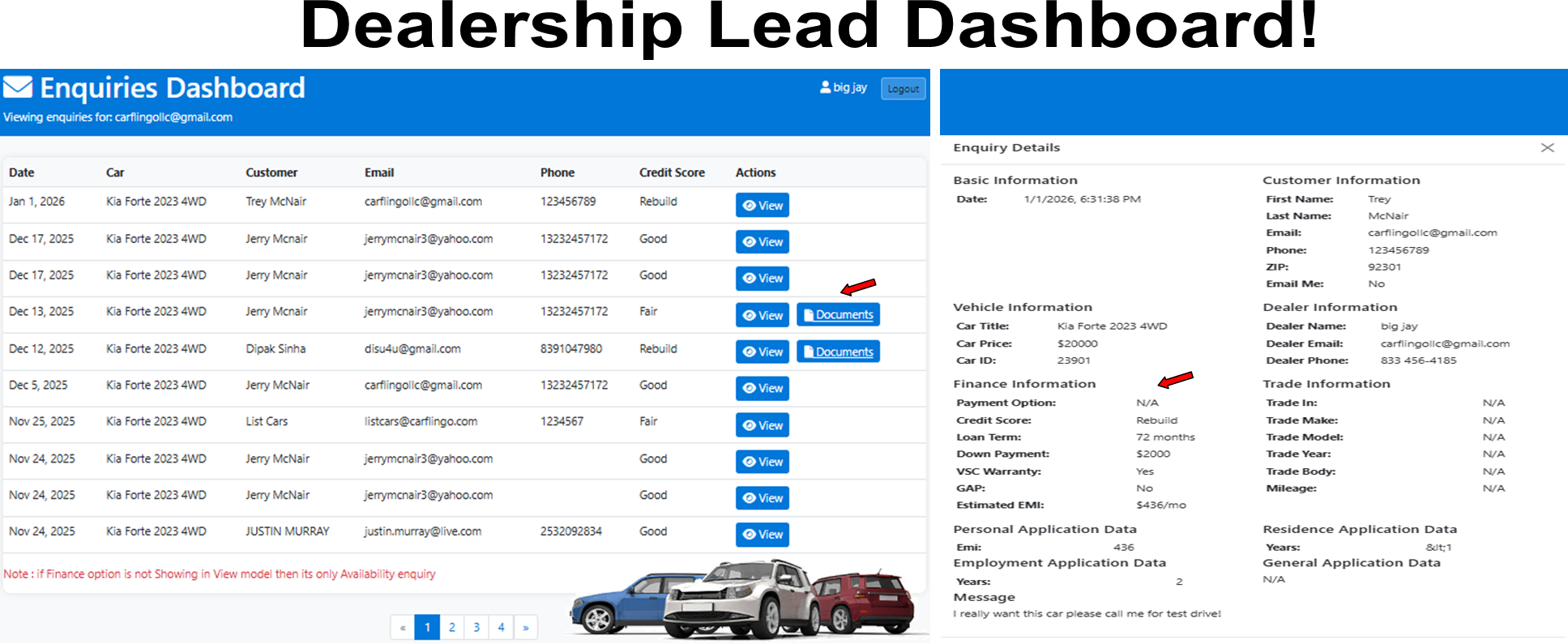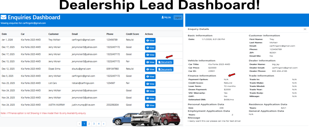 - ✔ Test Drive & Email Leads (Reports)